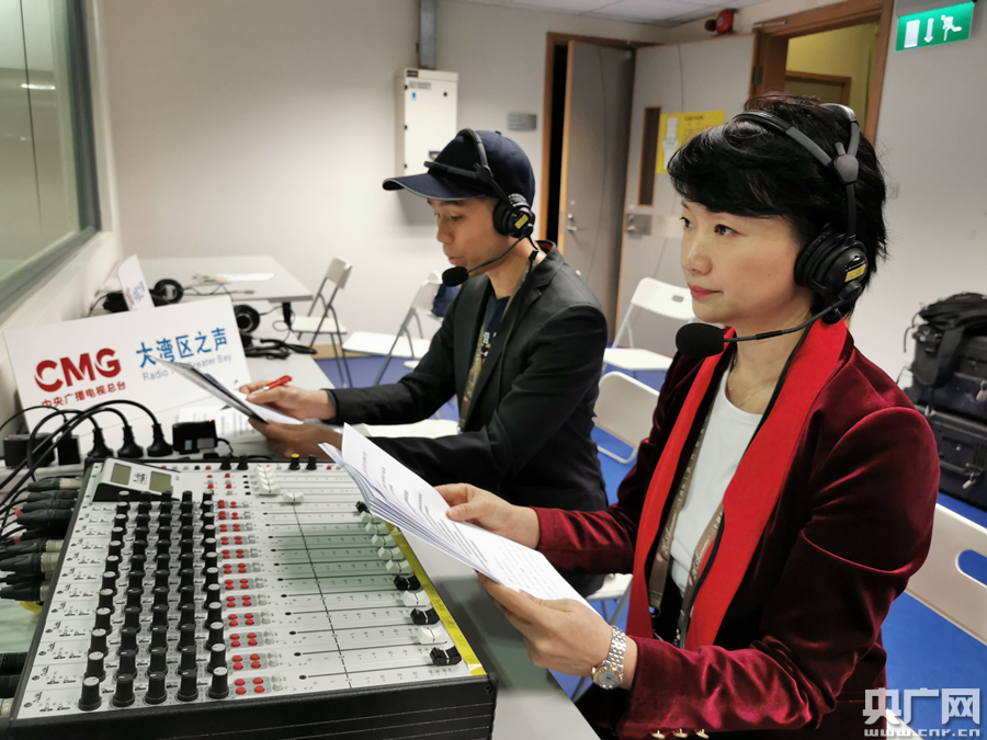 粵港澳大灣區(qū)之聲主持人曉東(左)、陳星(央廣網(wǎng)記者 韓靖 攝)