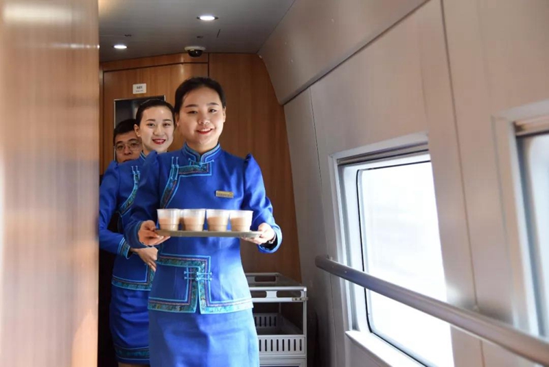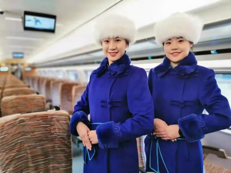 高鐵乘務(wù)員身著民族特色服裝(央廣網(wǎng)發(fā) 中國鐵路供圖)