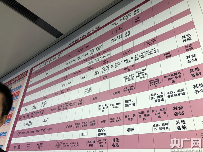 (監(jiān)控中心一側(cè)的墻上,貼著各站起售時間表及春運期間的工作值班表。 記者王晶 攝)