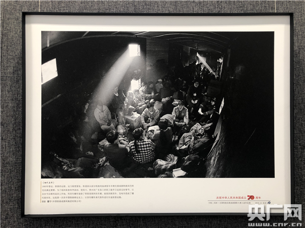 第一次在中國鐵路春運史上,以貨車棚車來替代客車進行長途旅客運輸。該圖片展示于國家鐵路集團一樓展廳(央廣網(wǎng)記者 王晶 攝)