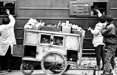 以前站臺上能買到各種各樣的小吃(廣州鐵路供圖)