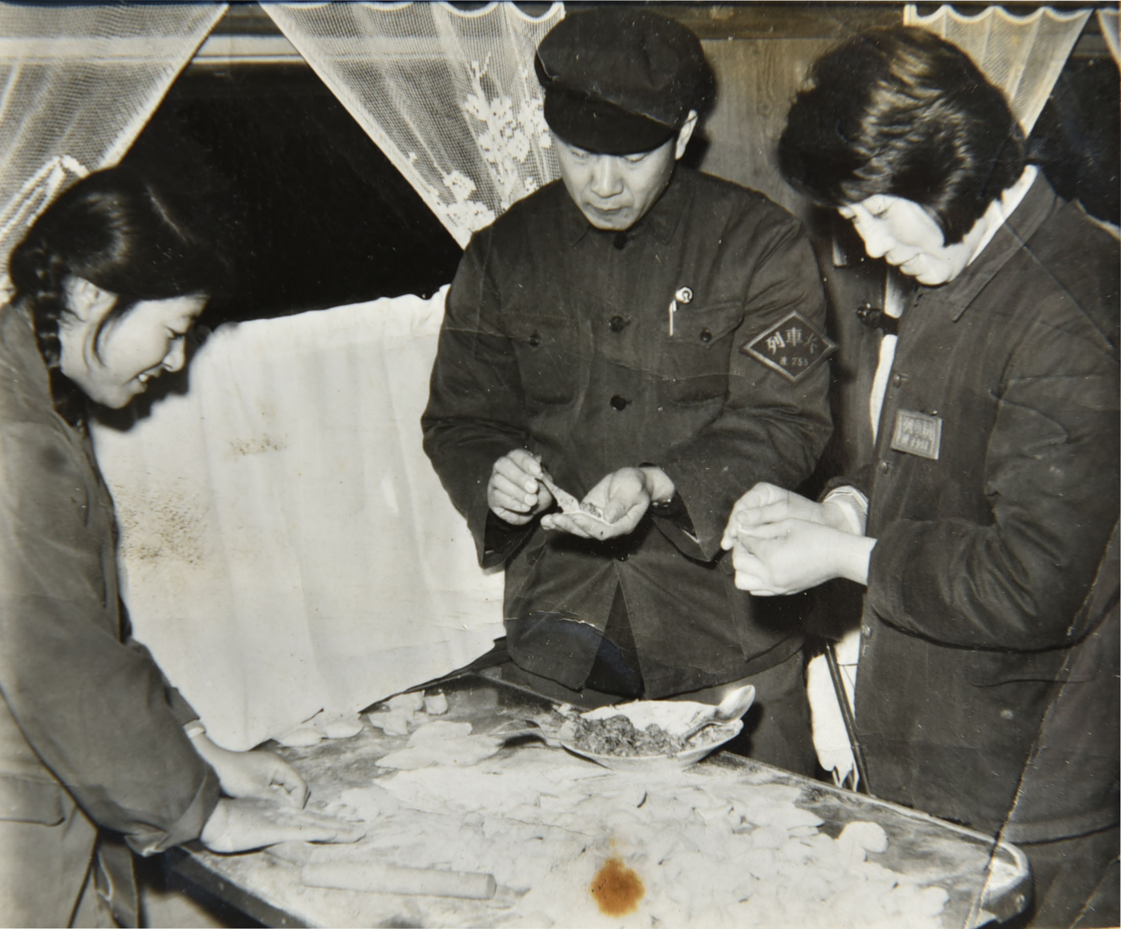 上世紀80年代,春節(jié),列車員為旅客包餃子(沈陽鐵路供圖)