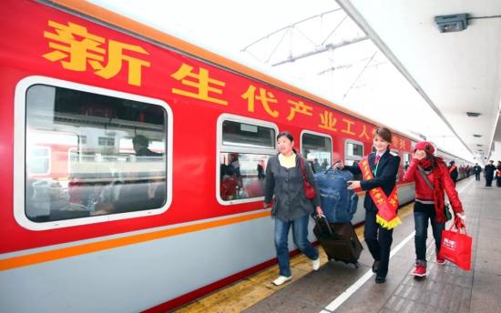 2012年春運,新一代農(nóng)民工返鄉(xiāng)專列開行(廣州鐵路供圖)