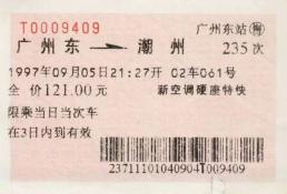 常見的有粉色的紙質(zhì)車票,還有藍色的磁卡式車票,而且值得注意的是,那時的票上還沒有身份證信息(廣州鐵路供圖)