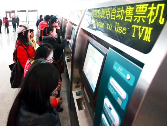 2010年,乘客可以使用自助購票機買票(廣州鐵路供圖)