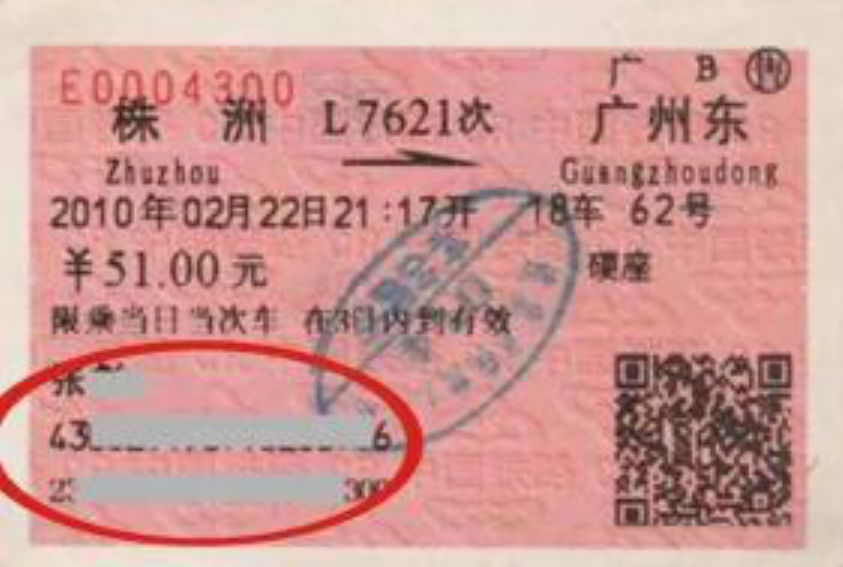 這時的車票已經(jīng)是實名制購買,印有身份證信息(廣州鐵路供圖)