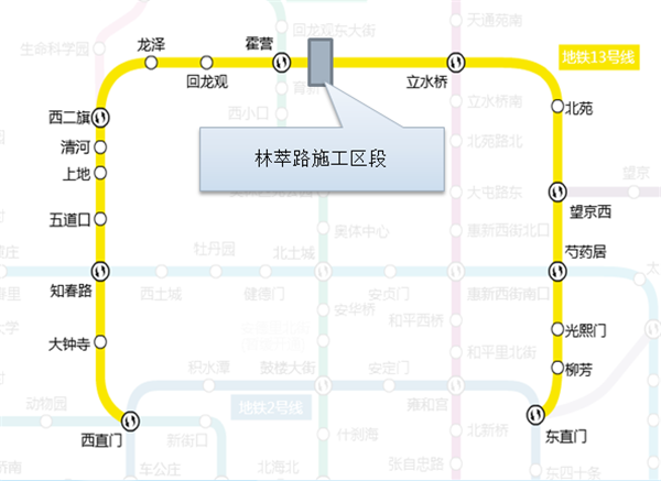 交通部門預(yù)計,本次林萃路施工總共工程時長為186小時,1月30日(正月初六)首班車起,地鐵13號線全線恢復(fù)正常運營。由于林萃路建設(shè)需段行13號線1、2號出入段線,若西直門至回龍觀站區(qū)間正常運營,13號線車輛將無法回車輛段進行檢修。因此,施工期間13號線西段(西直門站-霍營站區(qū)間)將暫停運營。立水橋附近設(shè)有地鐵車輛段折返線路,可滿足列車正常運營、檢修需求,東直門站-立水橋站區(qū)間正常運營。