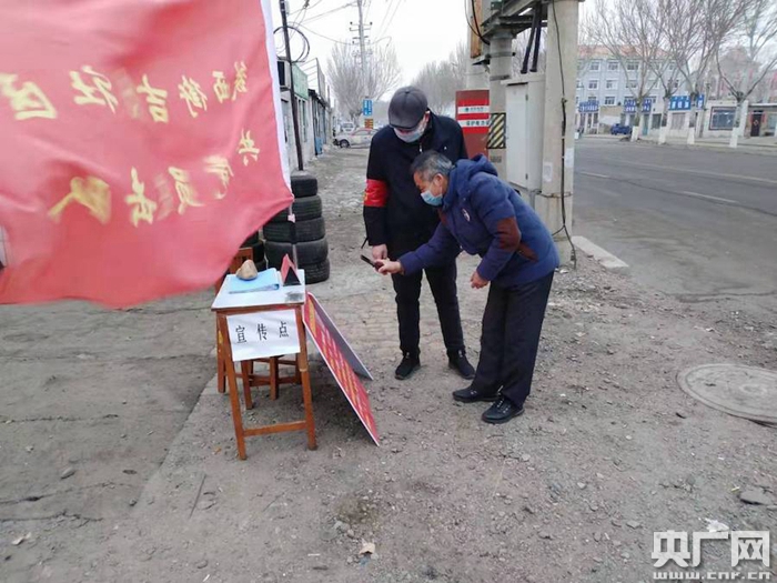 工作人員進(jìn)行疫情防控知識宣傳(央廣網(wǎng)發(fā) 鐵西街社區(qū)供圖)