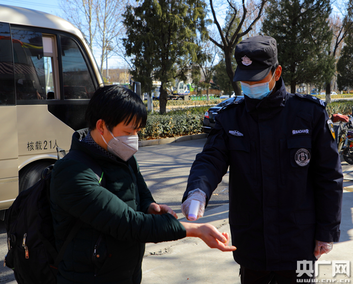 返京人員正在進(jìn)行體溫測量(央廣網(wǎng)發(fā) 北京市人力資源和社會保障局供圖)