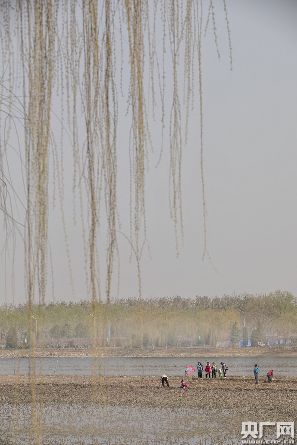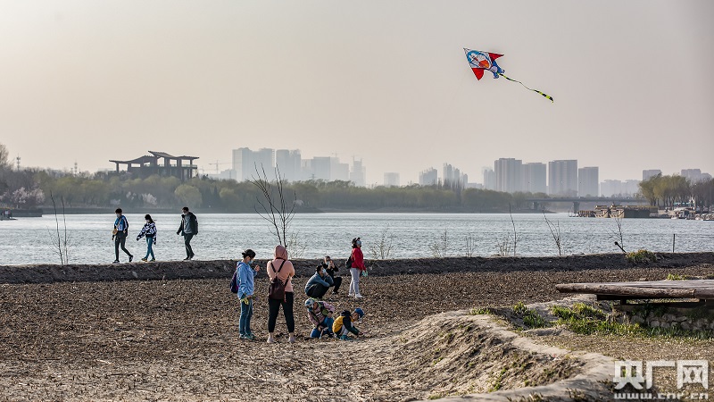正在河邊放風(fēng)箏的游客(央廣網(wǎng)記者 張佳琪 攝)