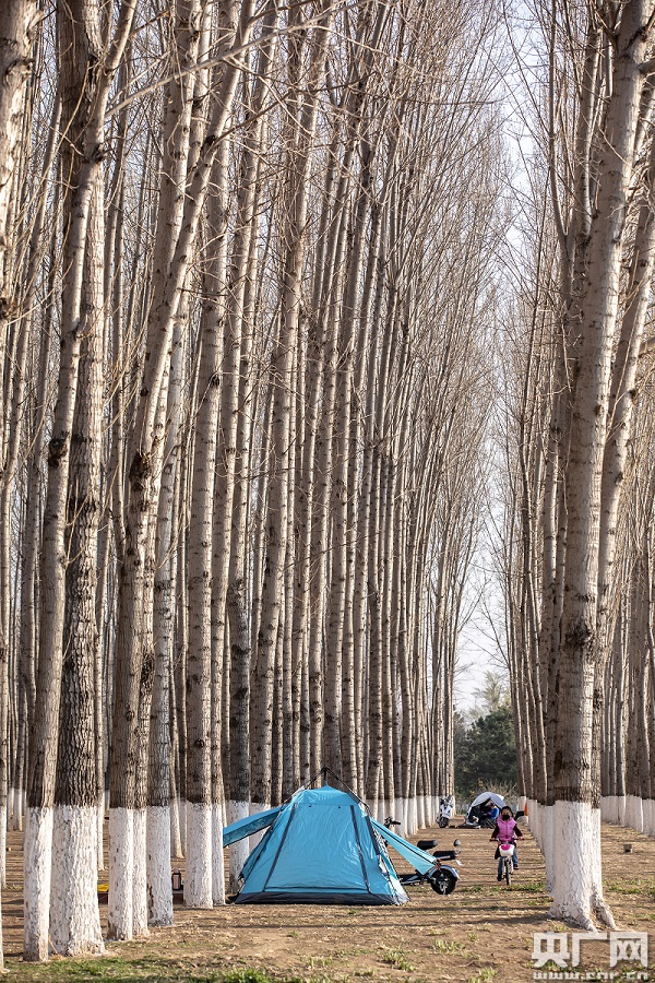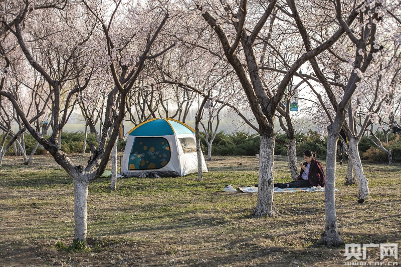 搭起帳篷賞春景的游客(央廣網(wǎng)記者 張佳琪 攝)