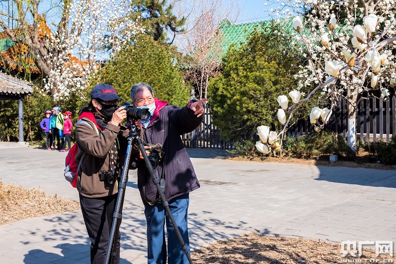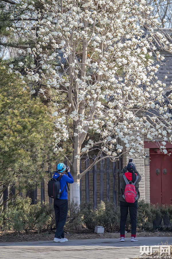 游客用鏡頭記錄綻放的玉蘭花(央廣網(wǎng)記者 張佳琪 攝)