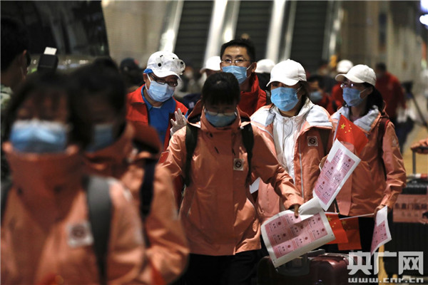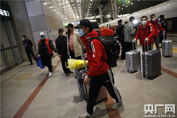央廣網(wǎng)北京3月26日消息(記者王晶 張凱航 李帥)“你們辛苦了!歡迎回家!”昨天(25日)21時10分,由中國鐵路北京局集團(tuán)有限公司北京客運段值乘的G68次列車緩緩開進(jìn)北京西站。在抵京的人群中,有一群特殊的旅客,他們是來自北京中醫(yī)藥大學(xué)東直門醫(yī)院、東方醫(yī)院和中國醫(yī)學(xué)科學(xué)院檢測隊的援助湖北醫(yī)療隊隊員,共計60余人。