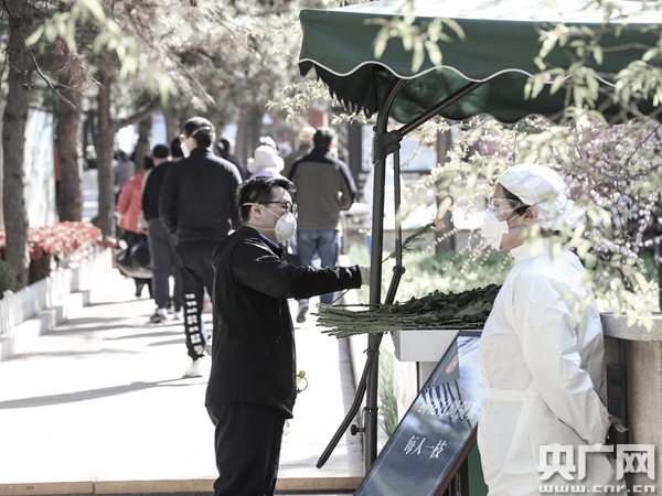 清明節(jié)當(dāng)日,八寶山人民公墓加強(qiáng)限流、防護(hù)措施,更多市民選擇不到現(xiàn)場的“云祭掃”(央廣網(wǎng)記者 張佳琪 攝)