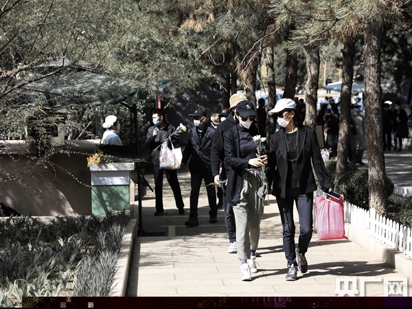 完成網(wǎng)絡(luò)預(yù)約的逝者親屬攜帶鮮花前往祭掃(央廣網(wǎng)記者 黃一博 攝)