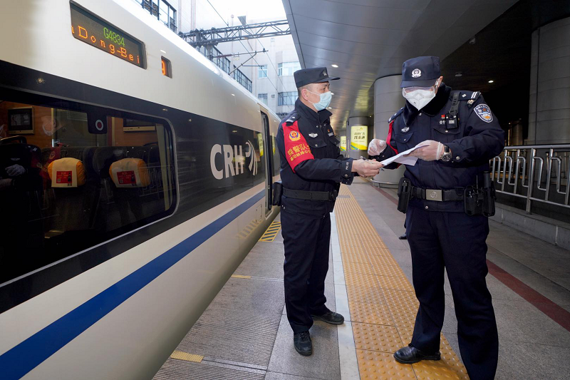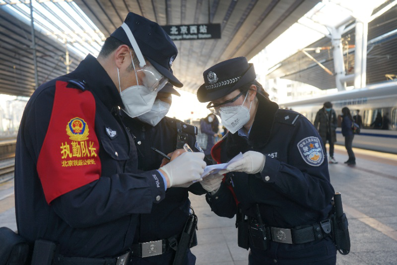 接送留鄂返京列車是北京鐵路民警近期最重要的工作之一(央廣網(wǎng)發(fā) 北京鐵路公安處供圖)