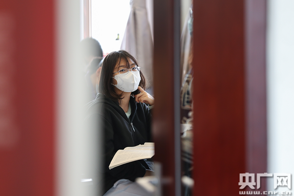 學(xué)生佩戴口罩上課(央廣網(wǎng)記者 韓靖 攝)