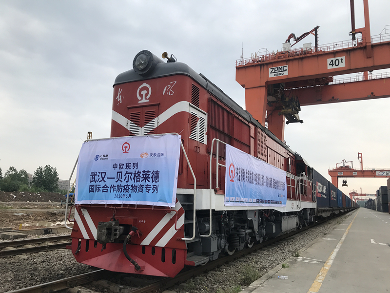 中歐班列國際合作防疫物資專列從武漢開出(央廣網(wǎng)發(fā) 武漢鐵路供圖)