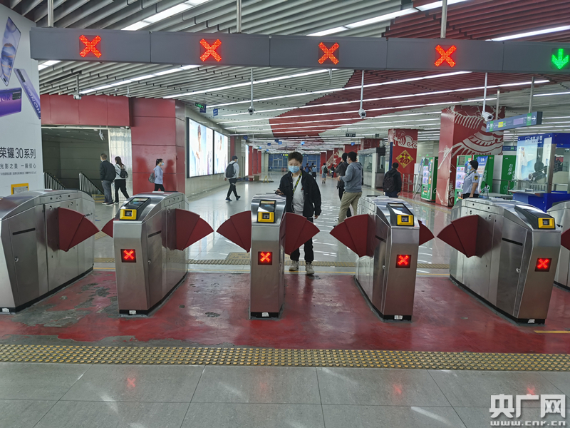 北京地鐵2號(hào)線東直門站,乘客正在使用“一碼通乘”有序出站(央廣網(wǎng)記者 劉一荻 攝)