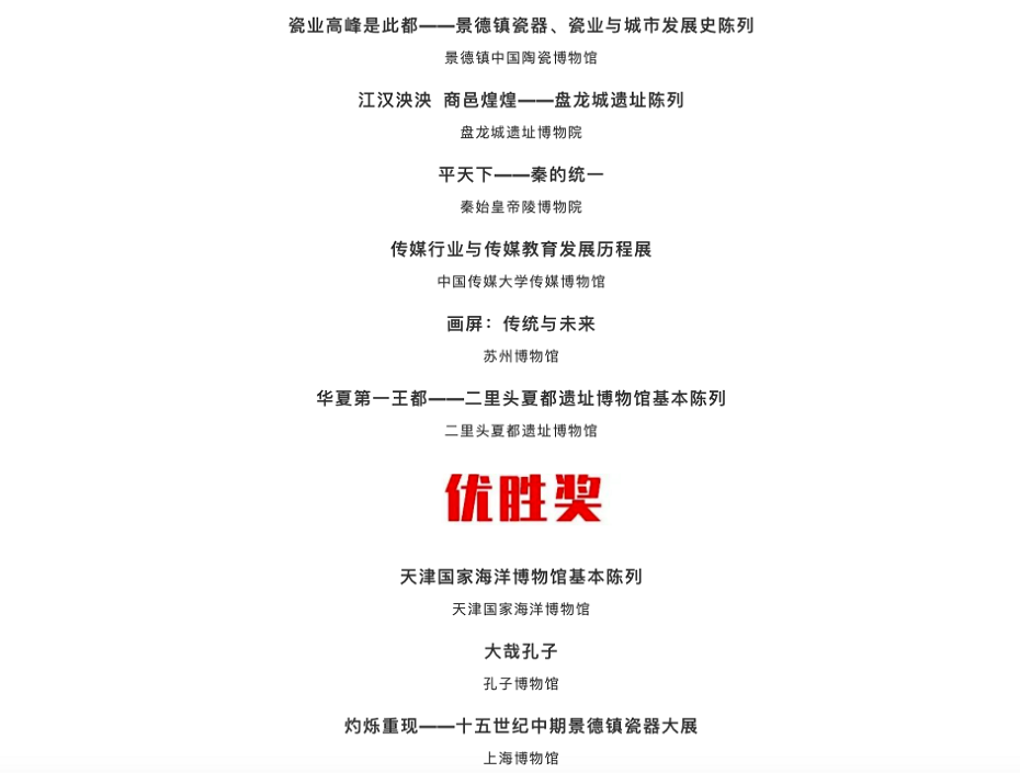 附:“第十七屆(2019年度)全國博物館十大陳列展覽精品推介活動”各獎項情況
