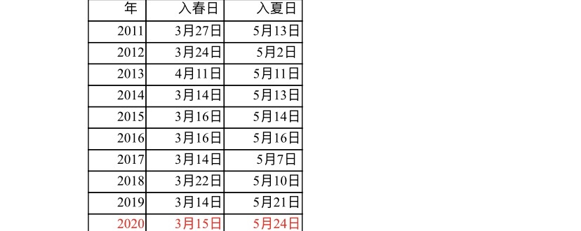 圖2北京2011-2020年入春日及入夏日
