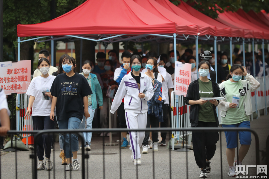 7月10日,北京中關(guān)村中學考點,高考結(jié)束后考生陸續(xù)走出考場(央廣網(wǎng)記者 韓靖 攝)