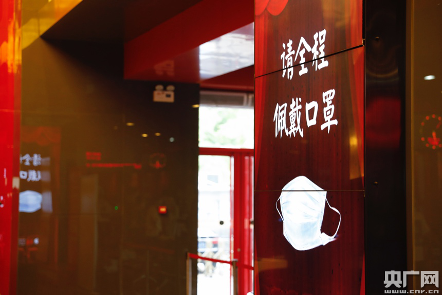 影院內(nèi)隨處可見防疫小提示(央廣網(wǎng)記者張凱航 攝)