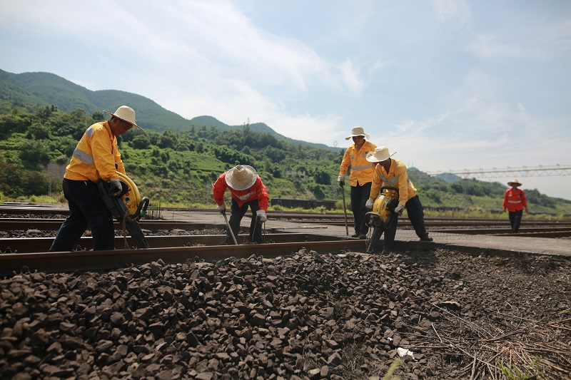 央廣網(wǎng)北京8月8日消息(記者韓靖 通訊員羅浪)進(jìn)入8月以來,山城重慶持續(xù)高溫天氣,開啟“火爐”模式。位于沙坪壩區(qū)的興隆場編組場,擔(dān)負(fù)著中歐班列(重慶)、陸海新通道、沿江班列的編組任務(wù)。連日來,氣溫接近39℃,重慶工務(wù)段興隆場線路車間線路巡養(yǎng)三工區(qū),正迎戰(zhàn)“高烤”,工人們揮汗如雨,在編組場里進(jìn)行起道搗固、設(shè)備巡檢作業(yè)。