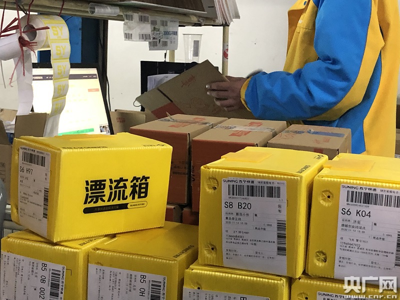 11月11日,蘇寧通州物流基地,這種料箱可代替紙箱裝載消費(fèi)者購買的商品,滿足快遞綠色化的要求(央廣網(wǎng)記者 黃一博 攝)