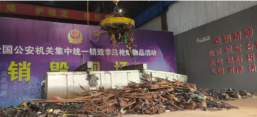 央廣網(wǎng)北京11月17日消息(記者張佳琪)11月17日9時(shí)許,隨著一支支氣槍、獵槍、火藥槍等非法槍支在山東泰山鋼鐵集團(tuán)公司被投入熱軋部轉(zhuǎn)爐,集中統(tǒng)一銷(xiāo)毀非法槍爆物品活動(dòng)正式啟動(dòng)。記者17日從公安部了解到,公安部組織全國(guó)153個(gè)城市同步開(kāi)展以“除槍爆 護(hù)穩(wěn)定 保民安”為主題的集中統(tǒng)一銷(xiāo)毀非法槍爆物品活動(dòng),對(duì)近年來(lái)全國(guó)公安機(jī)關(guān)收繳和群眾主動(dòng)上繳的氣槍、獵槍等6.9萬(wàn)支槍支及一大批炸藥、雷管等爆炸物進(jìn)行集中安全銷(xiāo)毀。