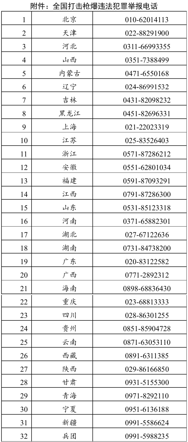 公安部公布了全國(guó)各地打擊槍爆違法犯罪舉報(bào)電話(huà)(央廣網(wǎng)發(fā) 公安部供圖)