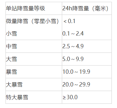 24h站點(diǎn)降雪量等級(jí)劃分表