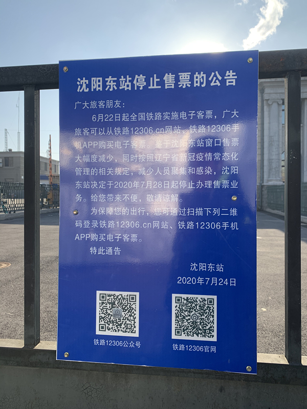 但前不久,沈陽(yáng)東站貼出了一份停止售票公告。記者從受訪者提供的公告圖中看到,公告稱,鑒于沈陽(yáng)東站窗口售票大幅度減少,同時(shí)按照遼寧省疫情常態(tài)化管理的相關(guān)規(guī)定,減少人員聚集和感染,沈陽(yáng)東站決定于2020年7月28日起停止辦理售票業(yè)務(wù)。