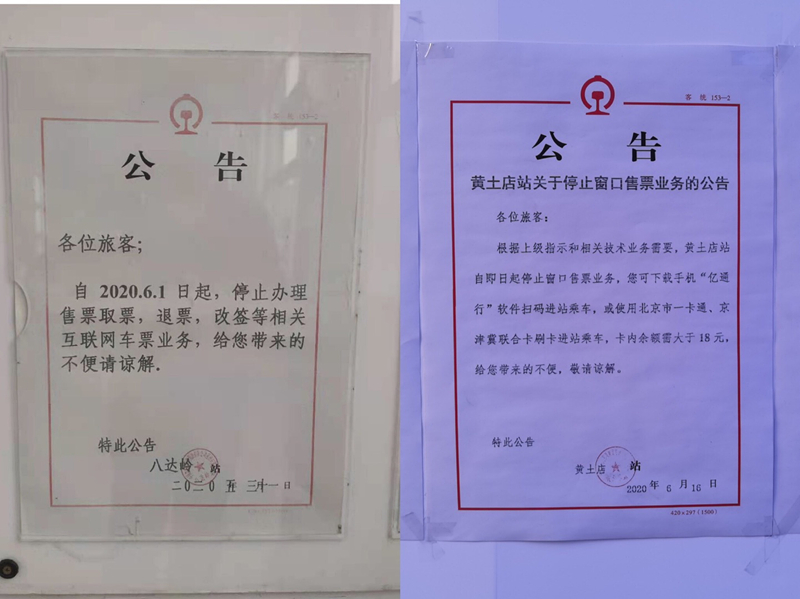 記者先是致電12306客服,對(duì)方稱各站仍可購(gòu)紙質(zhì)票。但隨后,記者調(diào)查發(fā)現(xiàn),自2020年6月開(kāi)始,S2線沿線黃土店站、南口、八達(dá)嶺站、延慶已全部取消了人工售票處,不再出售紙質(zhì)票,需通過(guò)北京一卡通等軟件掃碼方式乘坐,或使用支付寶掃碼購(gòu)票。