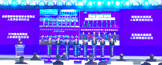 成都國際鐵路港綜合保稅區(qū)、綿陽綜合保稅區(qū)、瀘州綜合保稅區(qū)、宜賓綜合保稅區(qū)正式封關(guān)運(yùn)行,F(xiàn)場共選取26個(gè)入?yún)^(qū)項(xiàng)目集中簽約,總投資64.4億元,主要涉及醫(yī)療器械、新材料、電子信息等領(lǐng)域。