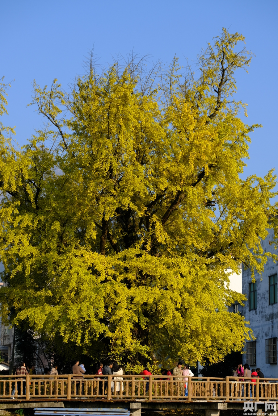 央廣網(wǎng)吉安12月7日消息(記者謝元森 通訊員羅樟華 李書(shū)哲 彭志強(qiáng))受今年秋季氣溫普遍偏高影響,在被譽(yù)為“銀杏村”的江西省遂川縣巾石鄉(xiāng)新安村,千年銀杏樹(shù)直到大雪節(jié)氣前夕才披上“金衣”,吸引不少游客駐足觀賞。近年來(lái),當(dāng)?shù)厝嫱菩辛珠L(zhǎng)制,護(hù)綠、筑綠、活綠、復(fù)綠,把歷經(jīng)風(fēng)霜的銀杏列為古樹(shù)名木重點(diǎn)保護(hù),充分發(fā)揮其藥用、觀賞和經(jīng)濟(jì)價(jià)值。