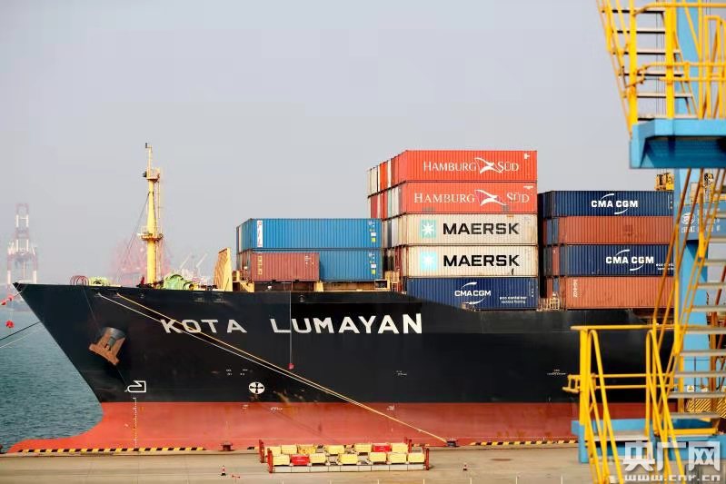 12月10日,位于青島前灣綜合保稅區(qū)封關(guān)范圍內(nèi)的山東港口青島港全自動(dòng)化集裝箱碼頭,數(shù)艘外輪正在裝載出口貨物。(央廣網(wǎng)發(fā) 張進(jìn)剛 攝)
