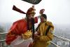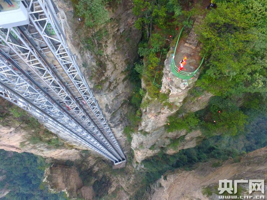 2月6日,在旅游勝地湖南張家界核心景區(qū)武陵源,張家界百龍?zhí)焯莨ぷ魅藛T裝扮成“財神”向中外游客送紅包,寓意雞年洪福齊天,旅游豐收,生活美滿 -