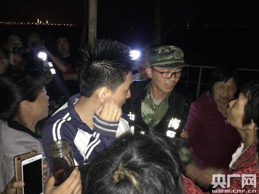福建海警二支隊(duì)今晨成功救起1名落水群眾(央廣網(wǎng)發(fā) 游訓(xùn)利 李晨攝) 救援小組組長張聰下達(dá)指令:“根據(jù)潮汐和風(fēng)向判斷,現(xiàn)在是漲潮時(shí)間,又是吹攏風(fēng),人應(yīng)該會(huì)往港內(nèi)漂,我們?nèi)O網(wǎng)區(qū)仔細(xì)尋找!庇纸(jīng)過半個(gè)多小時(shí)的拉網(wǎng)式搜索,海警官兵在一漁網(wǎng)上發(fā)現(xiàn)該落水村民,光著膀子、手抓浮球,只有頭部露在水面上,臉色發(fā)白、十分虛弱。官兵邊喊話邊拋救生圈給該落水人員,成功將其救起,并為他穿上迷彩服保暖,確認(rèn)身體狀況良好后,將其安全交給親人。 -