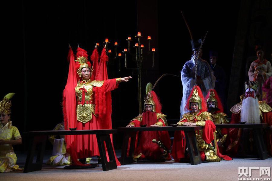 大型原創(chuàng)漢劇《優(yōu)孟衣冠》湖北荊州震撼首演 央廣網(wǎng)荊州6月22日消息(記者左艾甫 荊州臺(tái)記者佘?chē)?guó)。┮磺鷼鈩(shì)恢宏的文化贊歌,一段傳揚(yáng)千古的君臣佳話(huà),一部弘揚(yáng)荊楚文化的大戲。近日,由湖北省荊州市藝術(shù)劇院、湖北省藝術(shù)研究所聯(lián)袂打造的大型原創(chuàng)漢劇《優(yōu)孟衣冠》在湖北省荊州市震撼首演,用氣勢(shì)恢弘的楚宮樂(lè)舞和飽含著荊風(fēng)楚韻的舞臺(tái)向觀(guān)眾展開(kāi)了一幅楚文化的瑰麗畫(huà)卷。 -