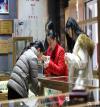 2018年1月15日,在湖南省張家界市武陵源區(qū)向王定制非物質(zhì)文化遺產(chǎn)生產(chǎn)保護(hù)展示基地,游人在挑選“生肖狗”銀飾 -