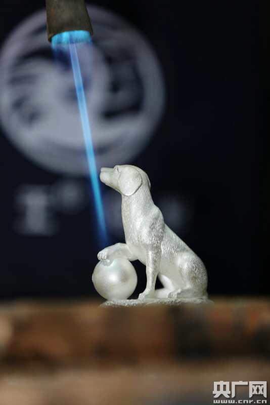 2018年1月15日,在湖南省張家界市武陵源區(qū)向王定制非物質(zhì)文化遺產(chǎn)生產(chǎn)保護(hù)展示基地,工人正加緊趕制“生肖狗”銀制工藝品 -