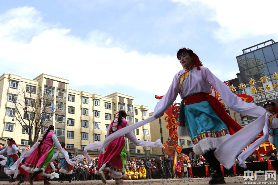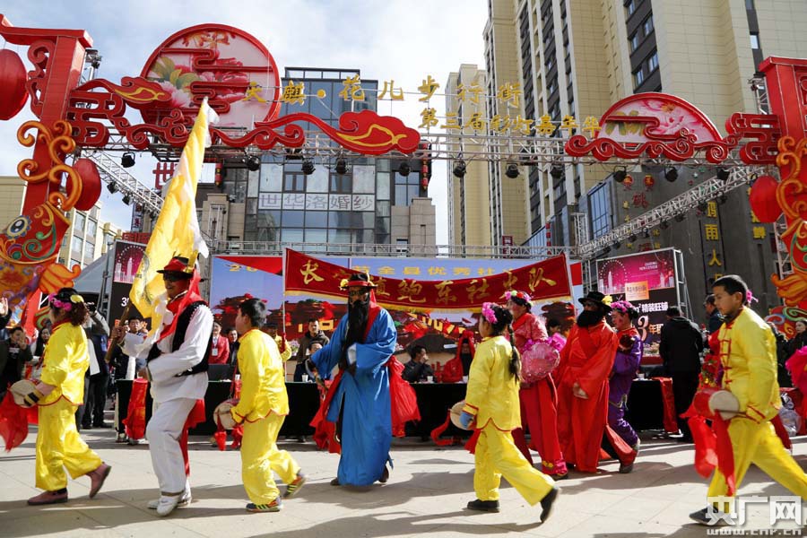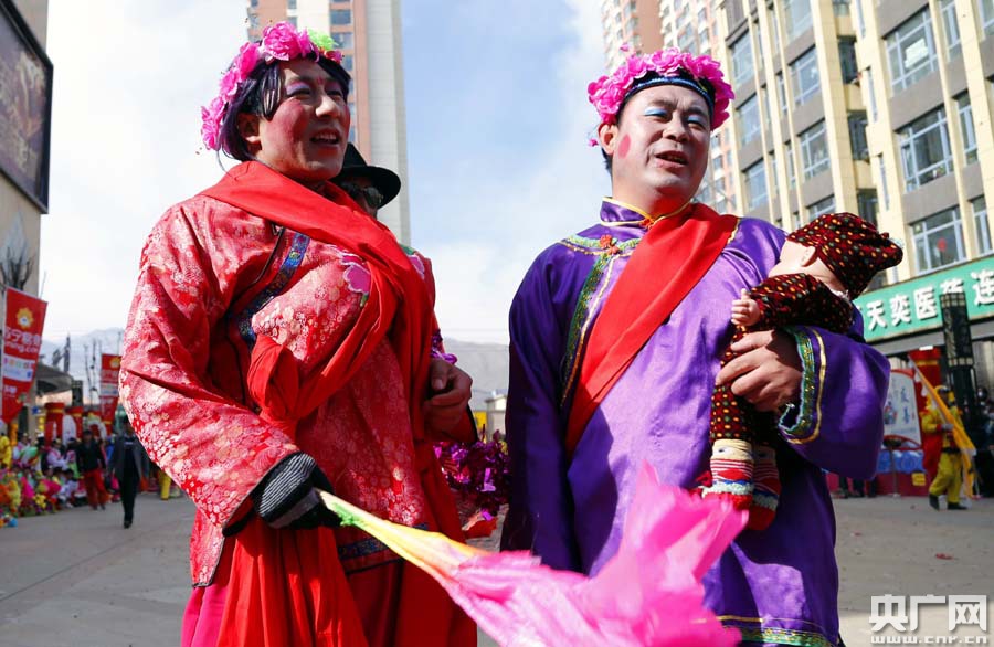 青海西寧市大通縣2018年社火進(jìn)城展演 央廣網(wǎng)西寧3月1日消息(記者張雷)鑼鼓喧天頌盛世,歡歌笑語鬧新春。昨天(2月28日)上午,青海省西寧市大通回族土族自治縣長(zhǎng)寧村鮑東社火隊(duì)、景陽蘇家堡社火隊(duì)先后在縣城天麒花兒步行街廣場(chǎng)進(jìn)行社火展演,古裝扮相、儺戲表演、傳統(tǒng)社火與漢族、回族、土族、藏族多民族歌舞表演融為一體,儼然一出歷史古裝大戲、民族歌舞大薈萃,為市民和游客送上一道道豐富的文化大餐,帶來無限歡樂。 -