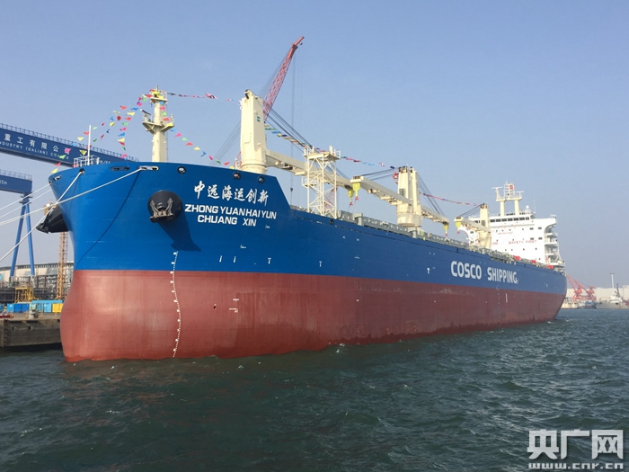 大連中遠(yuǎn)海運(yùn)重工交付第2艘6.2萬噸多用途紙漿船(央廣網(wǎng)發(fā) 官雄杰 攝)