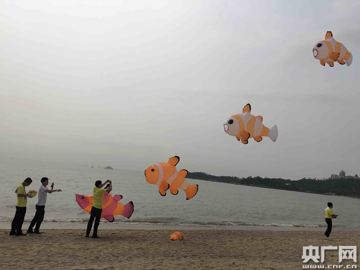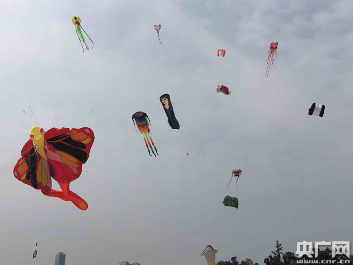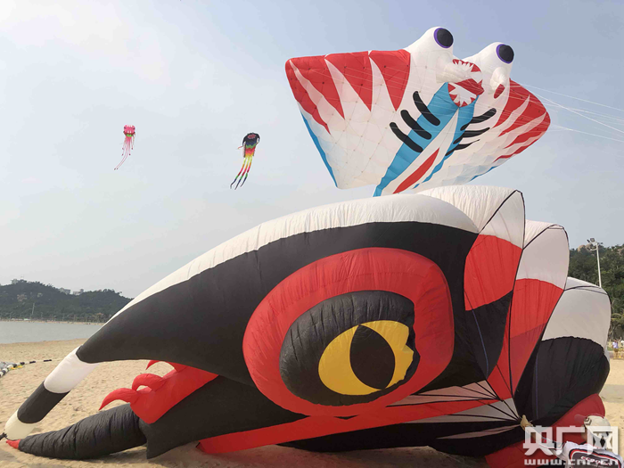 各種各樣的風箏在珠海香爐灣上演“空中芭蕾”(央廣網(wǎng)記者 何偉奇 攝)