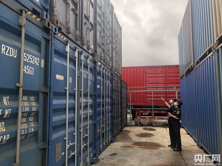 8月8日,廣州海關所屬廣州車站海關關員在廣州大朗物流基地海關監(jiān)管場所進行巡查(央廣網(wǎng)發(fā) 海關供圖)