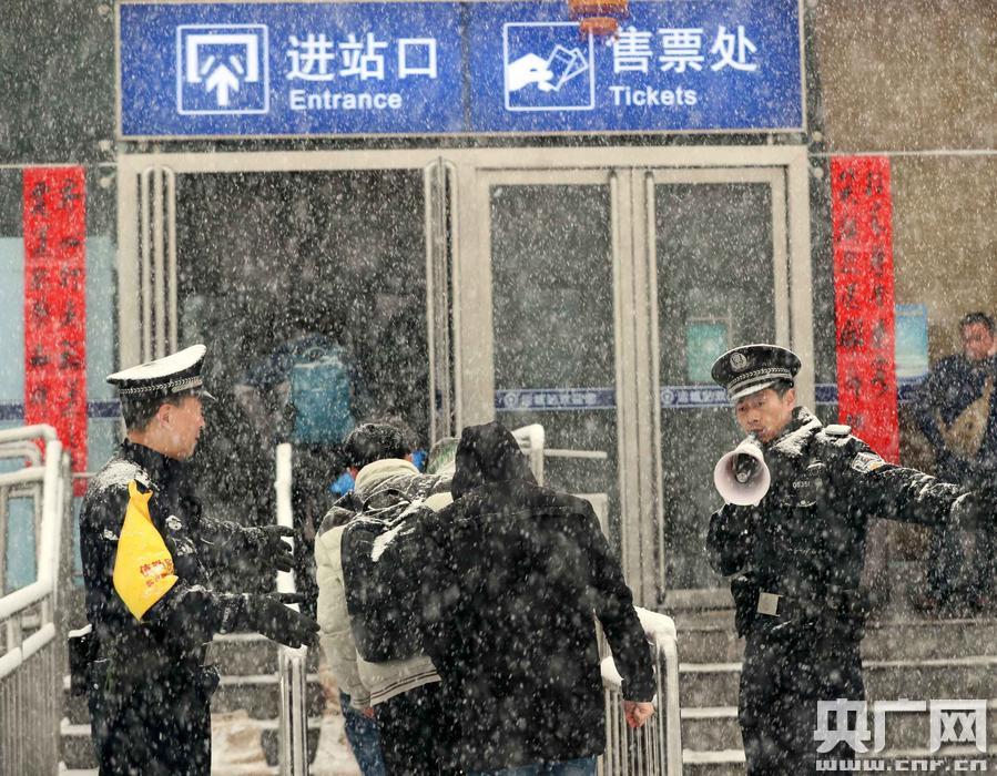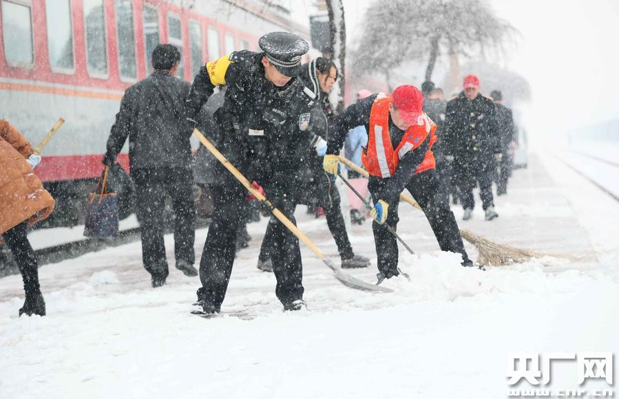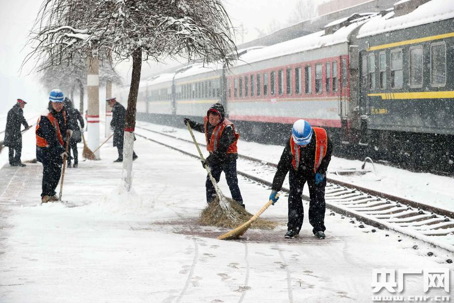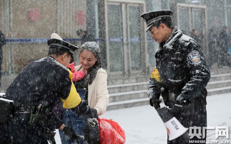 山西運(yùn)城:春運(yùn)最后時刻迎來雪中情 央廣網(wǎng)運(yùn)城2月21日消息(記者賀威通 通訊員鮑東升)今天是春運(yùn)最后一天,山西運(yùn)城市大雪彌漫。運(yùn)城車站派出所執(zhí)勤民警和侯馬北鐵路供電段運(yùn)城電力工區(qū)員工在車站站臺清掃積雪,疏導(dǎo)秩序,幫扶行走不便的旅客,防止溜滑摔倒,保證他們出行平安和春運(yùn)善始又善終。 -