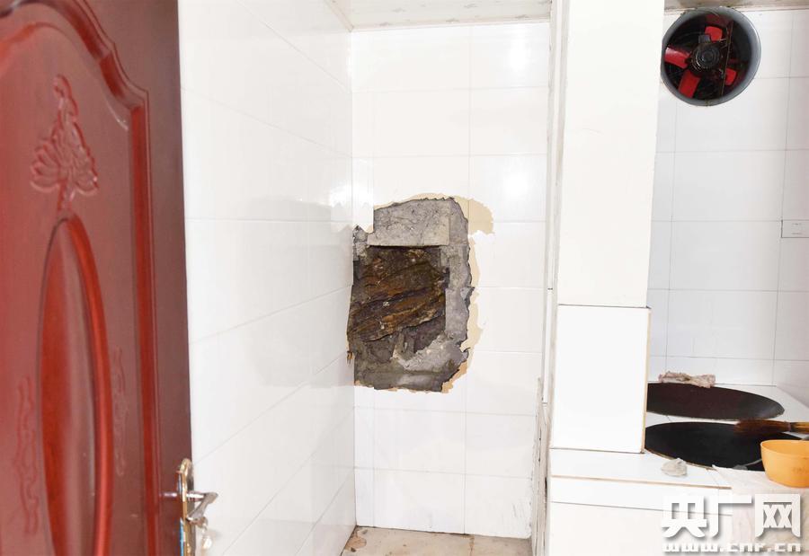 湖北保康山體滑坡巨石穿墻 連夜轉(zhuǎn)移安置2名老人   央廣網(wǎng)襄陽(yáng)4月11日消息(記者張毛清 通訊員歐陽(yáng)智慧) “轟——”屋后傳來(lái)一聲巨響,因長(zhǎng)時(shí)間降雨,山體出現(xiàn)滑坡,一塊巨石穿透3間房屋,嚇煞2名老人......4月9日,湖北省保康縣城關(guān)鎮(zhèn)土門村發(fā)生驚險(xiǎn)一幕,所幸并無(wú)人員受傷。   湖北省?悼h從上周一開(kāi)始,連續(xù)出現(xiàn)陰雨天氣。4月9日11時(shí)許,受強(qiáng)降雨影響,位于該縣城關(guān)鎮(zhèn)土門村6組秦國(guó)聯(lián)屋后,一塊巨石滾落山體,砸中房屋。秦國(guó)聯(lián)家一樓的廚房、樓梯間、衛(wèi)生間被巨石穿透墻體(如圖)。   據(jù)了解,秦國(guó)聯(lián)老伯68歲,與老伴二人在家生活,兒子和兒媳遠(yuǎn)在廣東務(wù)工。險(xiǎn)情發(fā)生后,2名老人自認(rèn)是自然災(zāi)害,且都未受傷,就沒(méi)有報(bào)警,而是打電話將情況告訴了兒子。   當(dāng)晚6時(shí)許,遠(yuǎn)在異鄉(xiāng)務(wù)工的兒子越想越擔(dān)心,遂撥打電話報(bào)了警。?悼h公安局城關(guān)派出所民警接到報(bào)警求助電話后,當(dāng)即冒雨趕赴現(xiàn)場(chǎng)施救。   提起那驚魂一刻,2名老人還心有余悸。“這一片雖然住了10幾戶人家,唯有秦國(guó)聯(lián)一家緊挨著山體,其他住戶并無(wú)險(xiǎn)情!泵窬瘋円贿呍O(shè)置安全警戒帶,一邊冒雨勘查完現(xiàn)場(chǎng),同時(shí)安排專人留守現(xiàn)場(chǎng),隨時(shí)觀察山體動(dòng)向。   “房屋隨時(shí)可能坍塌!天也黑了,雨還在下,您和老伴兒必須現(xiàn)在轉(zhuǎn)移!彪S后,民警將2名老人安置到村干部家居住。