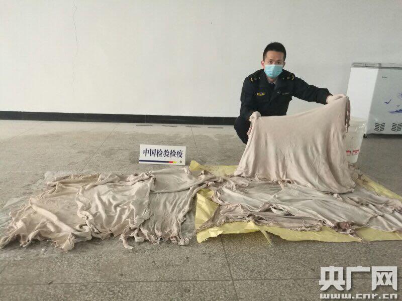 福建檢驗(yàn)檢疫局首次截獲郵寄生袋鼠皮(通訊員供圖) 央廣網(wǎng)福州4月15日消息(記者張子亞 通訊員董向 趙凌 惠凱)近日,福州機(jī)場(chǎng)檢驗(yàn)檢疫局與福州海關(guān)駐郵局辦事處工作人員聯(lián)合查驗(yàn)入境郵包時(shí),注意到一件包裹在X光機(jī)圖像上顯示異常。該郵包寄自澳大利亞,申報(bào)為“袋鼠皮樣”。工作人員將該郵包拆開后,發(fā)現(xiàn)內(nèi)裝塑料桶一個(gè),桶內(nèi)共裝有袋鼠皮13張。這些袋鼠皮大小不一,有的3張一捆,有的單獨(dú)1張一捆,共有五捆、13張,總重19.3千克。每捆均隨附塑料紙一張,上面記載著該捆袋鼠皮的張數(shù)、規(guī)格(大。┮约暗燃(jí)。上述袋鼠皮雖經(jīng)簡(jiǎn)單加工去毛處理,但仍有腥味,部分皮張上的血跡依然清晰可見。這是福建檢驗(yàn)檢疫局首次截獲郵寄生袋鼠皮。 根據(jù)《中華人民共和國(guó)進(jìn)出境動(dòng)植物檢疫法》及其實(shí)施條例規(guī)定,輸入動(dòng)物產(chǎn)品必須事前申請(qǐng)檢疫審批并獲得許可;且動(dòng)物皮張為《中華人民共和國(guó)禁止攜帶、郵寄進(jìn)境的動(dòng)植物及其產(chǎn)品名錄》內(nèi)所列明的動(dòng)物產(chǎn)品,屬于禁止攜帶、郵寄入境的物品。因此,福州機(jī)場(chǎng)檢驗(yàn)檢疫局工作人員已依法對(duì)上述物品作截留處理,并取樣送福建檢驗(yàn)檢疫局技術(shù)中心作進(jìn)一步檢測(cè)。 袋鼠皮纖維方向統(tǒng)一而無(wú)汗腺,呈水平結(jié)構(gòu),制成皮革后強(qiáng)度高、耐磨損,兼具羊皮的柔韌性和牛皮的耐磨性,是制作皮包、手套、高端足球鞋的較好原料。隨著中澳自由貿(mào)易的快速發(fā)展,國(guó)內(nèi)部分企業(yè)和個(gè)人希望借機(jī)從事相關(guān)加工貿(mào)易,開拓市場(chǎng),從而獲取利潤(rùn)。但值得提醒的是,未經(jīng)深加工的動(dòng)物制品極易攜帶動(dòng)植物病原體,存在較大疫情風(fēng)險(xiǎn)。另外,部分袋鼠還可能涉及《瀕危野生動(dòng)植物種國(guó)際貿(mào)易公約》(CITES)所限制的交易品種。如需進(jìn)口此類物品,需事前向檢驗(yàn)檢疫部門辦理檢疫審批手續(xù),并提供輸出國(guó)或地區(qū)檢疫機(jī)關(guān)出具的檢疫證書,進(jìn)境時(shí)向我國(guó)檢驗(yàn)檢疫機(jī)構(gòu)申報(bào),經(jīng)檢驗(yàn)檢疫合格后方能進(jìn)口。