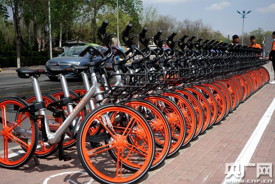 正式投放的摩拜單車(央廣網(wǎng)實習(xí)記者靳樹言 攝) 銀川市政府經(jīng)過三個月的精心籌備,制定了具體實施方案和管理辦法,完成了首批近500個停車區(qū)位施劃工作! -
